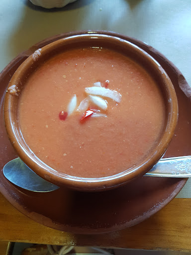 Read morePlatos de barro que prácticamente te los dan vacíos... Fuimos por recomendación y no nos ha gustado nada... Casi dos horas para comer. Nos pusieron pluma (donde se te cobra patatas y huevo a parte) por casi 20€ cada plato, la carne ponía que era a las brasas y en cambio nos lo pusieron a la plancha y encima seca y tiesa. Las patatas fritas super finas y enanas, por no decir que había 7-8 en el plato. El salmorejo sabía a vinagre y el rulo de queso de cabra 10€ por ponerte dos trocitos de aprox 2cm de grosor. Ah, y tampoco les quedaba postre. Casi 110€ d cuenta para comer 4 personas un plato y una...