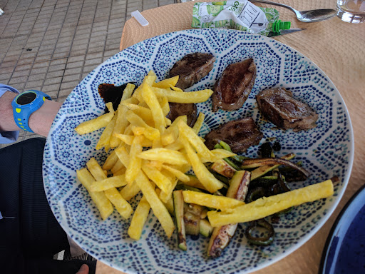 Ha sido parada habitual cuando visitamos la zona pero es muy triste comprobar cómo a degenerado el lugar. Uno busca estos lugares huyendo de los abusos de la costa y encuentra que incluso los supera. Pedimos 3 platos: 1. berenjenas fritas ( vienen cortadas como si fueran patatas fritas y estaban buenas. La cantidad nada que ver con las antiguas raciones);2. Plato de lomo, patatas y 2 huevos ( los 3 filetitos que pusieron con olor agrio incomibles, patatas fritas de las de los congelados y 2 huevos. Nos descontaron 3 eurillos por los filetes. Al final el plato de 2 huevos y unas patatas quedó en 8 euros, una ganga); y por último costillas de cerdo al horno. Voy a describirlo lo más fielmente posible: un puñado de patatas fritas tipo prefritas congeladas, dos trocitos de unos 3 cm de brócoli ( encontré debajo un trozo zanahoria) y la parte fuerte del plato dos trozos de costilla de unos 8-10cm de largo por 4 de ancho de la punta del costillar, es decir, la parte cartilaginosa. Al principio pensé que tenían un mal día hasta que leí los comentarios. Siento poner este comentario pero es que...