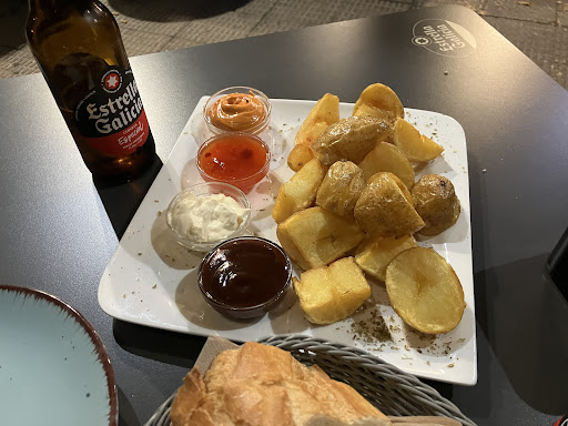 La decoración es simple pero el sabor de su comida es espectacular. Después de abrir boca con una mahou acompañada de tostas de jamón serrano y pinchos de tortilla casera (muy jugosa por cierto), nos decantamos por las croquetas (de tamaño “jumbo”) suaves y riquísimas, un par de hamburguesas, y un barco gigante de bacon y queso.