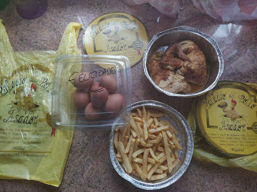 Como asador es el que más me gusta de los de mi zona. Los pollos siempre los encuentro jugosos y con una salsa muy sabrosa. Si es por pollo es recomendable 100%. Aparte de eso tiene varios platos adicionales que están muy bien (huevos rellenos, ensaladilla rusa, patatas alí-Oli, callos con garbanzos, albóndigas con tomate, macarrones, arroz tres delicias y algunos más). La ensaladilla me parece la mejor, en cuanto a sabor casero, de las que he probado en Coslada. Tiene varias ofertas para completar el pollo (con patatas, con pimientos fritos, con croquetas...) Y packs de tres platos. Las croquetas me parece de lo más flojo del local, muy normales. Ojo, no malas, sólo normales. También tiene para muy buenos, como el arroz con leche y la tarea de Oreo (una vez le pedí una tarta de tamaño grande para un cumpleaños y nos la preparó sin problemas, avisando con unos días). También tiene pan, las paletas de chocolate de Morata y han puesto un congelador con helados. Generalmente nos llevamos un lote completo para tener cosas para comer (generalmente cenar) un par de días. Un problema del local es el aparcar. Esta en una calle sin salida y es muy conflictivo aparcar, además los fines de semana suele hacer mucha cola (lo que para mí habla bien de la calidad de sus productos). Entre semana no suele haber problema para aprender y llevarse la comida. El acceso a minusválidos lo veo complicado, no sé cómo será la acera, pero para entrar al local hay que subir escaleras. No está preparado pero imagino que saldrán a atender sin problema. También venden a domicilio, no directamente, sino a través de las típicas plataformas. Lo sé porque he visto cómo recibían pedidos. Con todo lo dicho lo recomiendo para comer un buen pollo asado y platos preparados para quitarte previene a la...
