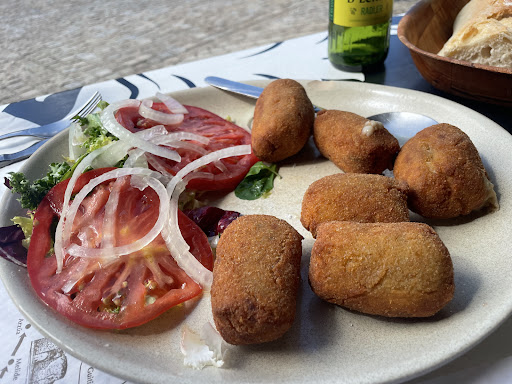 The food was good and plentiful for a menu del dia, with a bottle of wine and water 33 euros, good value. The choices were good although some were finished. It was a fiesta day so the restuarant was full and only one person serving so service was slow, but acceptable under the circumstances....