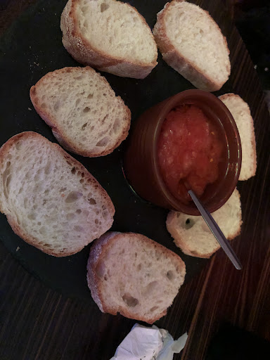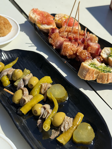 Es un bar de pueblo, engaña mucho, cuando te fijas ya ves buenos pinchos y piensas buena taberna rustica para un bocadillo 🥪 y lo es efectivamente muy buena, luego sobre el escenario dos tipos de los que igual cambiabas de acera por si te atracan por las pintas que llevan, preparan los instrumentos, viejos y achacosos como ellos, además uno ciego vaya plan? Sorpresa total!!!!, apenas tocan los ves como dos GRANDES ARTISTAS, hacia tiempo que no veia tan gran hacer, buena musica bien tocada, sentido del humor, ganas e ilusion, la gente aplaudiendo y bailando, los clientes ya son también otra cosa, ya no teniamos constumbre de ver gente educada, que se aparta para dejarte pedir en la barra, la camarera la pobre sobrepasada en el trabajo te atiende con sinpatia y una sonrisa, espero que se mantenga así mucho tiempo y poder volver muchas veces, buen bar, buena, comida, buen trato, y buena actuación donde lo...