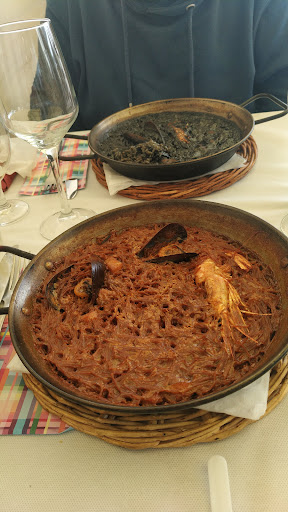Frente al mar, aunque en nuestra visita, un domingo, estaba nublado y comimos dentro. Hay un menú de fin de semana y sugerencias exquisitas. En mi caso, pedimos: mejillones al vapor (exquisitos, gustosos y carnosos), caracoles a la llanura (bastante buenos, pero no para chuparse los dedos), y arroz con gambas rojas (meloso, exquisito, en su justo punto, en cantidad para poder repetir y con un sabor impresionante). Y de postre: flan con nata (delicioso), y tarta Sacher (fabulosa). Para 4 personas y con botella de vino blanco y 2 cervezas: 124,00€ (31,00€/persona). Calidad muy aceptable, servicio maravilloso y lugar frente al mar. Repetiremos!! Ahh!!. Muy importante: los aseos,...