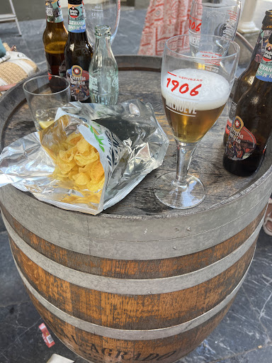 Nos ponemos en unos toneles que tienen en el callejón, le pedimos unas cervezas y preguntamos si tienen algo para picar.