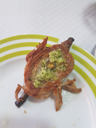 Pedimos menú del día (ajo arriero, zarajos y de postre tarta de queso y tiramisú) por 9,95€ y no nos dejó indiferentes. La comida un poco salada, especialmente el ajo arriero pero nada incomible.