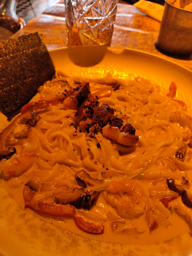 Lo devolvimos y esperamos unos 20 min más por el wok vegetariano que fue otra vergüenza. (En total esperé 30min para tener este plato de pasta que se cocina en 10min o menos por un cocinero profisional). 🍜 No es wok, es más una sopa de pasta y verduras y estaba imposible de comer! super super salado y la pasta mal cocinada (ni al dente). La carne de heura, tampoco estaba bien cocinada - necesitaba más tiempo de cocción para que gane tamaño y para que no sepa a cruda… lo devolvimos más que nada porque no se podia comer de tanta sal. incluso hemos dicho al camarero que se lo probara y nos ha dado la razón.