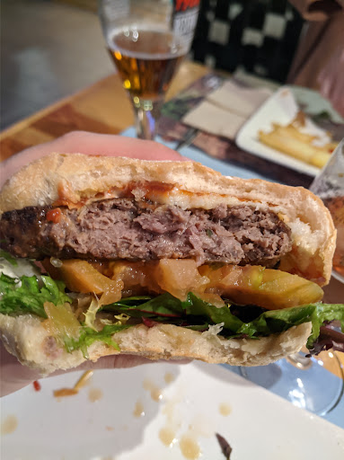 Read moreNada recomendable. Personal muy poco profesional. No se coordinaron entre sí. Tardaron más de 20 min desde que nos sentamos hasta que nos atendieron y 40 minutos en servir la comanda. Cuando lo hicieron, el camarero desconocía los ingredientes del plato solicitado, se indicaron la intolerancia a algunos alimentos y no preguntó, asegurando que no se servían con el plato solicitado. Cuando vimos una comanda igual a la solicitada (pero para otros comensales) con ingredientes a los que tengo intolerancia volvimos a insistir y no sirvieron lo solicitado y además también se equivocaron en la cantidad. Trajeron tres hamburguesas. Ninguna de las hamburguesas tenían los ingredientes especificados en la carta. Cuando llegó la hora de pagar se hicieron los distraídos y pretendieron cobrarnos su error. Todo un despropósito. Y como replica recibo una acusación de mentiroso y mal intencionado. Por lo tanto amplío: 1º. Los camareros "en plena hora punta" como usted señala, se fueron a fumar al callejón justo al lado de la mesa en varias ocasiones. Recibíamos el humo y nos desplazamos hacia el lado contrario de la mesa todo lo que pudimos. Si a eso no lo llama usted poca profesionalidad... 2º. Solicitamos dos hamburguesas de ciervo con queso y cebolla caramelizada, indicando que una de ellas solo tuviera la carne, el queso y la cebolla caramelizada, sin más ingredientes. Nos sirvieron una hamburguesa con pan, carne, queso, lechuga y tomate (sin cebolla caramelizada) y la otra solo con pan y carne. La tercera hamburguesa que no habíamos pedido fue devuelta, pero intentaron cobrarla. ¿Usted cree que existiendo en su carta una hamburguesa de ciervo sin otros ingredientes, a un precio inferior, voy a pedir una con queso y cebolla, para que luego solicite que retiren esos dos últimos ingredientes? Entiendo que no le gusten las reseñas bajas, pero por lo menos pido respeto. No me...