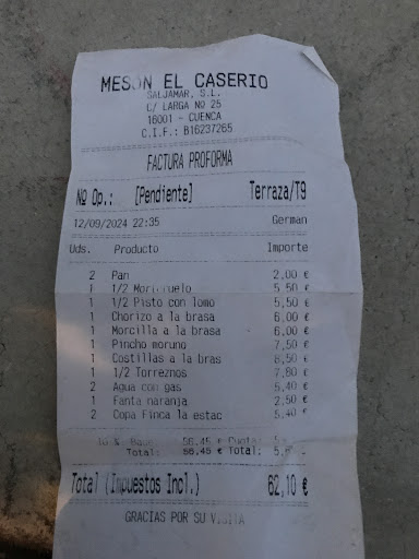 Read morePecamos de nuevos y de hambre :(. Llegamos por la tarde/noche a Cuenca y paseando por el castillo, nos dejamos convencer por el dueño del restaurante que desde la puerta fuera nos vendió la comida casera hecha a la brasa. No suelo hacer caso a los cazadores de clientes porque considero que si en un restaurante se come bien, los clientes van solos sin necesidad de que los convenzan. Pero íbamos con niños y era tarde. Nos dejamos aconsejar por el camarero, un hombre con muy buena voluntad y majisimo. Así que pedimos algunos platos típicos como el morteruelo y pisto con lomo, una especie de carne (supuestamente lomo a tacos con tomate y pimiento), pinchitos , alitas y embutidos. El morteruelo no reflejaba el aspecto que había visto en fotos, el plato de lomo tenía solamente pimientos y los pinchitos y las alitas estaban medio crudos. Lo único medio decente los embutidos, ya que la guarnición de todos los platos era patatas paja de bolsa. A todo esto se le suman los precios carísimos. Más tarde, en otros restaurantes de la zona me recomendaron probar el morteruelo, pero las primeras impresiones te pueden marcar de manera muy negativa 🙁. Definitivamente...