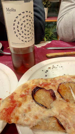 Read moreLas pizzas muy ricas: de masa fina, con queso que sabe a queso, con recetas tradicionales y originales. ¡Me ha encantado la de berenjena con miel! Cogí un vino rosado y también me sorprendió positivamente, además, era de Cuenca y de estándar Bio. Por cierto, tienen la carta para la gente con las alergias de todo tipo... Por decir la verdad, salimos muy contentos a pesar de los fallos en el servicio. Creo que son tan populares que no dan a basto, deberían ampliar el negocio y contratar más gente. Pero en total, muy buen. Y el aseo femenino limpio, con asiento adaptador para la gente con la silla de ruedas, con papel y toallas de secar las manos y hasta con un cambiador de bebés. Pongo nota máxima, porque cuando estás de turismo en una ciudad desconocida y eliges al azar, la sorpresa grata de sensación final "ha estado muy bien" es de agradecer. Si buscáis comer bien y no tenéis prisa, os va a...