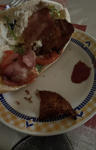 Pedimos una hamburguesa pollo crunch y eran 2 trozos de pollos enanos. Pedimos una racion de pollo crunch y los otros eran literalmente el doble si no mas que los trozos que se suponian eran la hamburguesa. vamos que la hamburguesa de pollo eran practicamente 2 nuggets. Tanto las patatas fritas como el pollo venian mezclados: unos recien hechos y otros de no se sabe cuando y se notaba claramente tanto por la textura como a simple vista por el color... Penoso. Pedimos las patatas bacon y no llevaban casi nada, osea que 4 patatas revenidas sin apenas topping. Edito: Me parece perfecto que os caractericéis por raciones grandes, pero aquel día no lo fueron. Hace poco, in situ, no a domicilio, pedimos una porción de pizza de pepperoni y daba auténtica pena. Parecía una alpargata de lo seca que estaba y llevaba literalmente 1 rodaja. Eso sí, pedí patatas bacon queso y la verdad es que mil veces mejores que las que nos llevasteis aquella noche en el pedido...