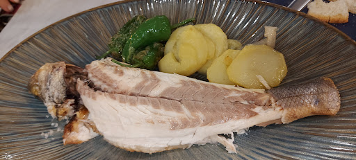 📷 lubina a la sal para dos , con patatas y pimientos, rica 8/10