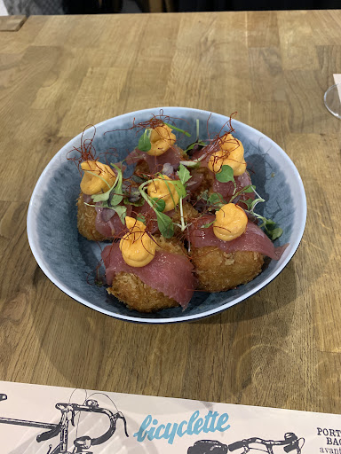 Read moreCené hace un par de días con mi novio allí. Al parecer era uno de los mejores sitios que puedes encontrar en Cuenca por TripAdvisor, con lo que íbamos con unas expectativas bastante altas. La carta es bastante pretenciosa, lo que se ofrece a primera vista parece que va a ser una buena combinación, pero no lo es. Lo sabores de los platos no pegan, y se pisan entre ellos (eso si el ingrediente tiene sabor, porque en el caso de la ternera es inexistente) Pedimos el Royal de foie con crumble de setas. Quizá si el crumble no hubiera estado, el plato habria sido menos dulce. Pedimos las croquetas con sashimi de atún y una mantequilla, la cual no recuerdo exactamente de que estaba hecha. Las croquetas aplastaban el sabor del atún, y la mantequilla era un pegote helado y sin sentido. De segundo, pedimos el tartar de ternera y el tataki de ternera, comimos un tartar de pepinillos fabuloso y una carne ultra pasada de cocción. En ambos casos, la ternera sin la calidad por la que estas pagando el plato. Acabamos pagando 90 euros por platos con una mala ejecución y productos de mala calidad, por lo que ni volveremos ni lo recomendamos. El servicio excelente, muy bueno y rápido, a pesar de no tener el vino que ordenamos al principio, nos sugirieron uno nuevo que...