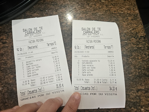 Después de esperar 10 min a que nos cojan la comanda. Hemos pedido 1 tostadas completa sin gluten y dos completas normales. Cuando nos llegan, en una falta aguacate, les decimos que no pasa nada, pero que lo tengan en cuenta en la cuenta.
