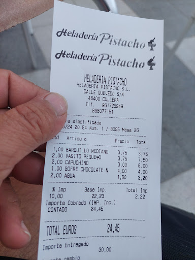 Nice place, food selection of coffees, drinks and ice creams. Inside and outside seating. Good friendly service. Edit 2021 Used to really like it here but visited yesterday and changed my mind. Arrived 35 minutes before closing and asked for a coffee, the waiter started looking at his watch and asked how long we would be. When we asked to sit outside (for covid reasons) which would have involved him moving some chairs, he kept urging us to have out coffee inside .... Maybe it's just that waiter.. but there are other more friendly and accommodating heladerias en el paseo... Hope you have a better...