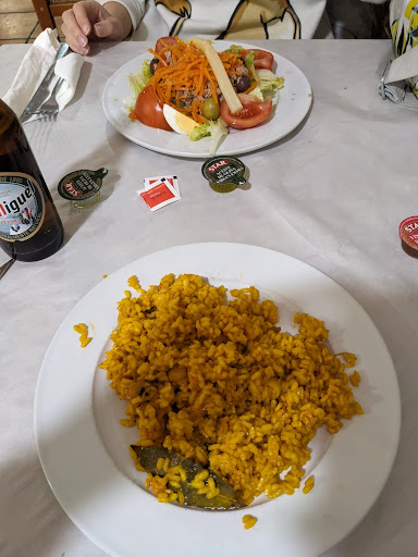 Read moreMe ha parecido un bar de playa, en el que puedes comer a buen precio. De hecho estaba lleno de gente, demasiada!! Muy escandaloso, para mí gusto, ojo!!! La comida, se puede comer, pero no puedo darle 5 estrellas porque no es una calidad máxima!!! Las bravas, no las sirven con su allioli y su pimentón de la vera, te dan los sobrecitos para que las aliñes tú, y quizá será que yo las prefiero de otra manera! La paella, tenia buena sabor y lo cierto es que de todo ponen cantidad, pero le faltaba un no sé qué para decir: "madre mía, que paella más tremenda!!". Escaso el postre, fuera de menú apenas se podía elegir 😫 No había brownie, que dolor!!! El servicio rápido y en general agradables y la camarera muy maja, la verdad!! Y eso... queridos, es de máxima importancia en un negocio!!...