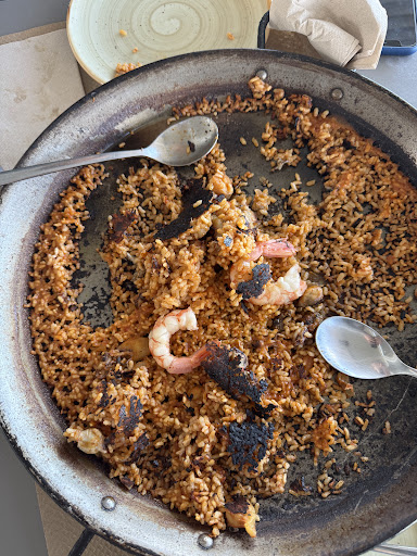 Aún más desconcertante, en la mesa contigua, compuesta por cinco personas, les sirvieron una paella preparada para tres comensales, lo que evidencia una grave desorganización en el servicio. Tras una espera adicional de 50 minutos, la paella que nos trajeron estaba completamente quemada y era absolutamente incomible.