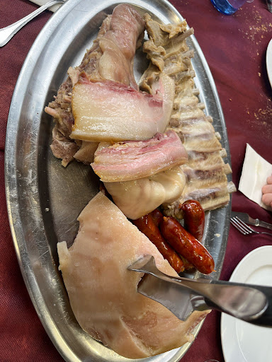 Read moreLugar por poco , pero muy poco aparcamiento y súper estrecho .. a pesar de que el personal es super amable y trabajan como hormiguitas no se dan abasto y tardan para todo un montón !!! Pero un montón ! No es culpa del personal .. los chicos son atentos … de entrada , en la mesa está la cesta de pan, la cual te la cobran por ración dependiendo de los comensales que se sienten .. un euro por persona de entrada ..la de primeros una ensaladilla normal … y unas croquetas de cima de patatas de paquetito, de las que vienen en bolsa.. patatas pajas le llaman … en cuanto a la comida , casera, pero nada especial… la carne asada en unas rodajas , dos rodajas por persona del grueso de un dedo .. con aproximadamente 8 pataticas.. nada de sabor … se pidió también un filete de ternera y si,de normal tamaño solo con unas patatas fritas . Nada especial tampoco . Casi sin sabor . Y sin sal . Lo único que estaba bueno fue el postre , la tarta de milhojas está muy buena . Me lo habían recomendado , por eso fuimos … pero no lo recomiendo ni...