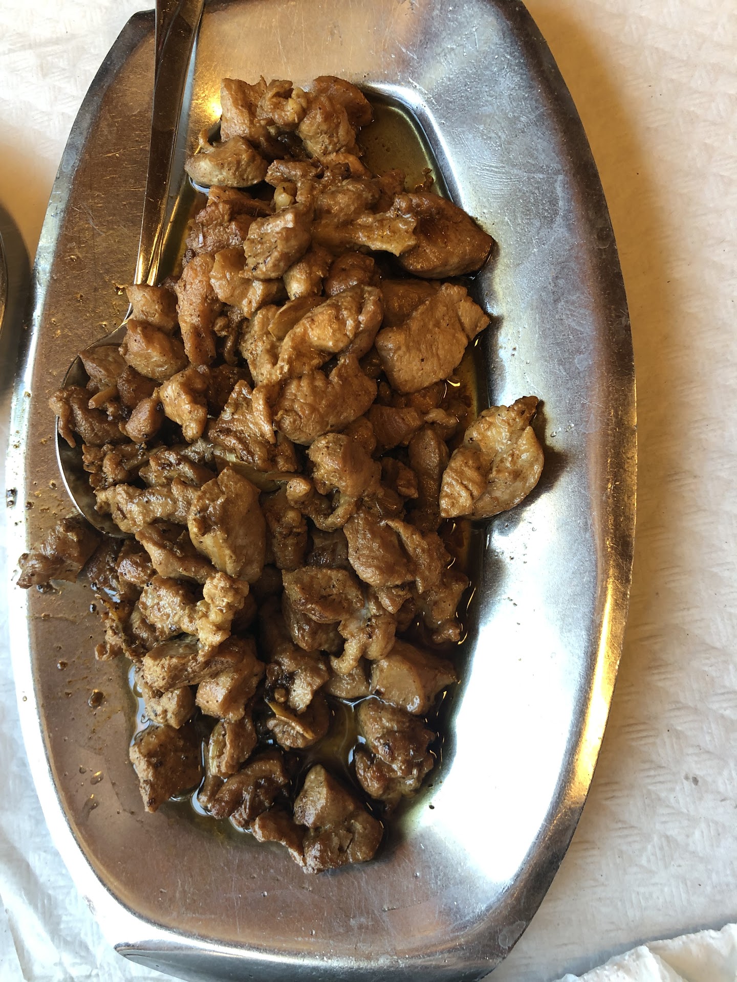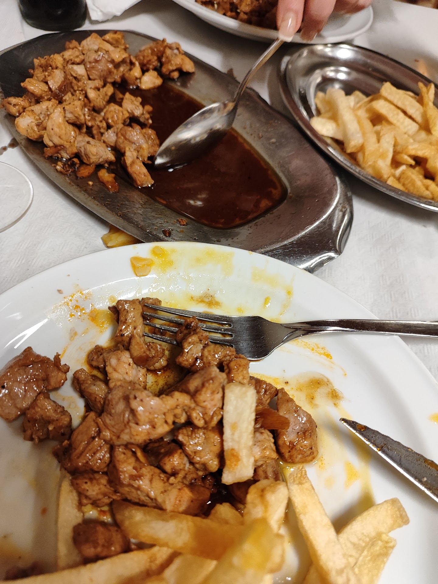 Ración de raxo con patatas (para dos): Muy escasa, más bien parece media racion, o dos buenas tapas. El raxo tiene buen sabor y la salsa está bien, pero la cantidad es decepcionante. Las patatas son fritas y caseras, lo cual es un punto positivo, pero nuevamente la porción es mínima. Para una persona