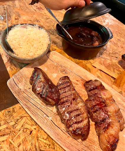 Visita de 13 de marzo de 2023: Esta vez fui a cenar con un colega, de entrantes pedimos coxinhas y de segundos pedimos un churrasco de ternera cada uno, me pareció algo extraño que la guarnición deba ser si o si patatas fritas y no tengan opción de cambiar las patatas a la mítica ensalada de lechuga tomate y cebolla, u otra guarnición! Postre pedimos tarta de queso fria, estaba rica, aunque la galleta María de arriba estaba chiclosa, y la crema una vez que se acaba la mermelada nos pareció insípida. El servicio estuvo bien, todo rápido. (Esta vez bajaré a 3 Estrellas) sin embargo es un local al que iría una vez cada cierto tiempo prolongado si quieres salir por el burgo y no ir...