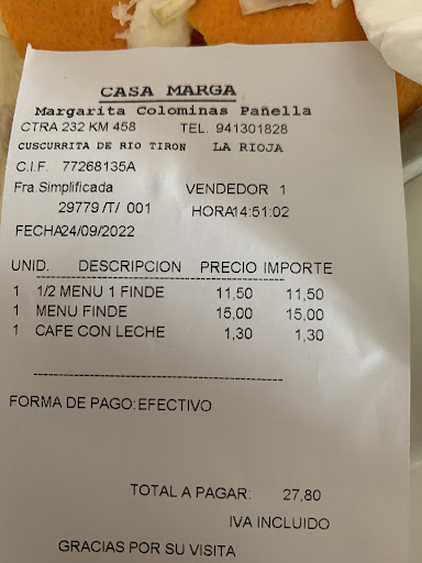 What a memorable experience. We arrived at 7:30–three very tired Americans, very hungry after a long drive, and knowing we’d probably be too early for Spanish dinner service. The bar was crowded with locals, but when I asked the owner for a menu, she took us into their very beautiful dining room. She turned on the TV, gave us a bottle of local wine, and proceeded to bring us visual examples of the dishes on the menu del dia. We ordered white bean stew with shrimp and pot roast. Both were homemade and excellent—the best Spanish grandmother’s cooking! The owner even made a special vegetarian salad for our daughter. Desserts were homemade and excellent as well. The dining room is full of family portraits, which the owner described to us. They also have original art by notable Basque artists. The restaurant is a family-run establishment that clearly takes pride in what they do. They’re celebrating their 20th anniversary and even gave us a hat and bag to commemorate it. Restaurants Marga is a very special place, and I hope we can go back again...