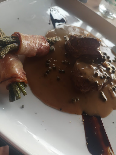Read moreCorrijo mi reseña, había puesto cinco estrellas ya que cenamos una noche y todo perfecto, las pizzas estaban muy bien y el servicio genial, tuvieron un problema con una de las pizzas por culpa de otro cliente que se apropió de una de las nuestras y se retrasó todo, tampoco fue para tanto y se portaron genial con nosotros, ahora bien..., hoy hemos pedido dos pizzas para comer, una barbacoa y una carbonara. La barbacoa ya la habíamos probado y la carbonara nos pareció una buena opción. En este caso en vez de tomarlas allí las hemos pedido para recoger, una decepción brutal. La barbacoa no tenía carne, la salsa no estaba distribuída por la pizza, estaba puesta con un chorro del bote, el resultado final ha sido penoso. La carbonara estaba igual, un huevo en el medio era lo más jugoso, el resto muy seco y con poco material, una decepción. Conclusión, bien para cenar allí pero mal para recoger, al menos para hacerlo un jueves a las 15:25. He de decir que la cocina estaba abierta y seguían dando servicios, al recoger vimos como servían una carne a la piedra que tenía una pinta estupenda, lo dicho, para comer allí pero no creo que vuelva a pedir para llevar, parecen dos servicios distintos. Pongo una foto de la carbonara, no había pensado poner ni reseña no...