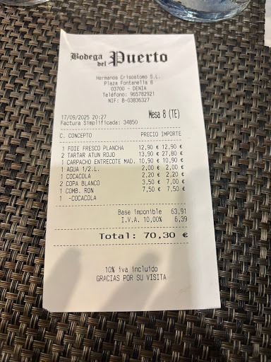 Read moreDo not whine and leave as soon as possible, if this is your gastronomic experience, I highly recommend this restaurant Bodega del Puerto Dénia.