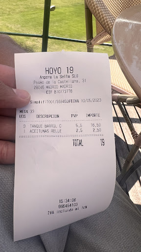 Read moreNada que decir con respecto al campo y el trato en casa club muy bien, no obstante (comprendo que la mayoría de clientes sean extranjeros y no suelan ponerles aperitivos con la bebida) pero aun así, no comprendo como tienen los bemoles de cobrar un greenfee a 110€ y con buggy 40€ más total 150€ que ni una botellita de agua te ponen y cuando llegas a casa club a tomar unas cervezas, no solo NO te ponen un aperitivo, si no que 3 cervezas después pido unas aceitunas y vaya mi sorpresa también las cobran.