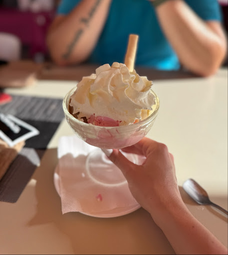 We were also really happy to receive a special kids’ menu for our daughter — such a nice touch. And to finish off the dinner, we ordered two scoops of ice cream for her… but wow! These weren’t your average scoops — they were the size of a fist! 😂🍨