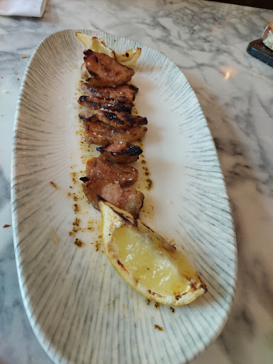 En esta ocasión nos decidimos por: Tartar de atún, bien troceado, aliñado con un aceite perfecto, gel de piparra, crujiente de tomate y lechuga de mar, muchos contrastes en un plato que no quieres que se acabe. Ensaladilla de pollo picante, plato para todos los públicos, cremoso, buen sabor. Agradecido. Croquetas de jamón, sin palabras, después de las de Cebo y Flama, las mejores. Coca con cebolla caramelizada. Para mi la masa increíble, pero había un sabor a naranja o cítrico que se comía al resto de la mezcla. Raviolis de gamba, pasta recién hecha para cubrir una gamba muy tierna y sabrosa, pero es que la magia está en ese caldo naranja: potente, intenso, sabroso, sedoso, perfecto. Chuleta: tiene todo lo que debe tener una carne.