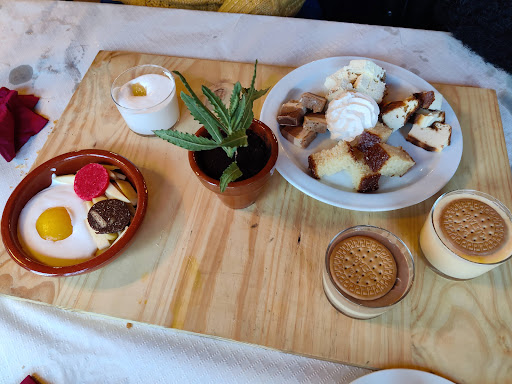 Estuvimos este sábado a la hora del almuerzo, coincidió con un evento especial del local, el october fest🧡, los camareros disfrazados y música en directo, nos pareció muy animado y algo diferente, haciendo q es ambiente fuese muy divertido. el lugar es idílico y si te gusta la naturaleza este es tu sitio además, hay un montón de gatitos preciosos🥰, otro punto a favor por lo menos para nosotros es q no hay cobertura y no se puede estar con el tlf durante la comida, hay que relacionarse y dejar el móvil😉 Ni que decir, la amabilidad de los camareros, en especial la chica q nos tomó nota de lo q íbamos a tomar, dijo q la comida era exquisita y no xq la hacía su madre con mucha gracia, aparte de eso, estuvo súper pendiente de q todo fuera de nuestro agrado y hasta se percató q tenía unas velas en la mesa y se las llevó para traerlas puestas😍 Vamos a lo importante, la comida, probamos bastantes cosas, nuestras favoritas fueron las costillas a la miel, el sabor espectacular y se deshacían en la boca, probamos todas las croquetas, morcilla y pera hay q probarla pero la de cabrales era de otro mundo, el solomillo perfecto, el codillo riquísimo y podría seguir ... los postres no defraudan, la verdad es q no teníamos grandes expectativas, pero cuando los probamos nos miramos y dijimos a la vez son como los de casa, creo q ese es el mejor piropo q puedes echar a un restaurante, sabe a casa, sabe a hogar, sabe a amor. Volveremos a vernos,...