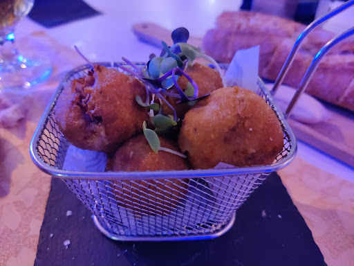 Local moderno, con buen ambiente, y servicio atento y amable. Nos decidimos a entrar para cenar compartiendo varias raciones, y al no tener reserva previa, nos ofrecieron una mesa alta que les quedaba libre. A pesar de ser alta, las sillas eran cómodas ya que tenían respaldo. La mesa era amplia y contaba con colgadores para bolsos, abrigos, etc.