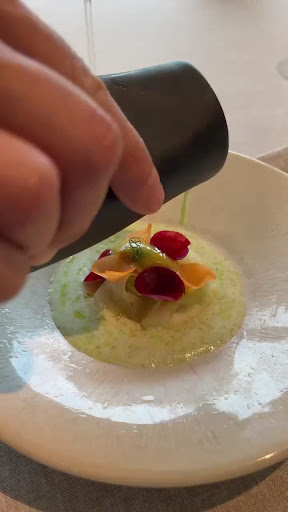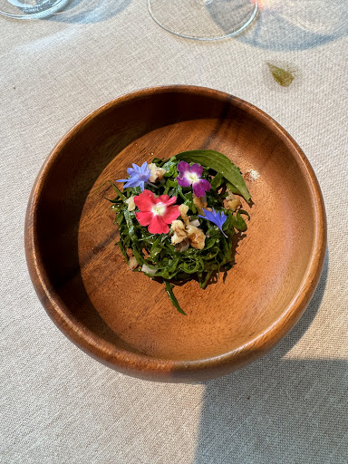 You are first taken to the patio area where you will enjoy some amuse bouche. They are crafted by the chef right in front of you and he explains about the dishes and the region. From there, you are guided to your table where the service is 5 star, truly impeccable in every aspect. This has great vegetarian and vegan options, and showcases the vegetables in the garden. The dishes are presented with immaculate plating and the contrast of flavours is remarkable. Truly one of the best dining experiences of our lives. Special thank you to Marta who toured us around the garden after lunch and explained their seed saving, fermenting...