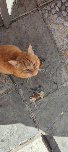 Por si fuera poco, durante nuestra estancia, un gato simpático se nos acercó, aparentemente hambriento. Decidimos compartir nuestra "comida" con él, pero ni siquiera el gato quiso tocar la croqueta, lo que nos hizo dudar aún más de lo que estábamos comiendo. Eso ya lo dice todo.