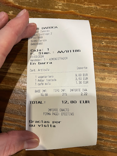 The service here was a highlight of my visit. The waitress who took care of me was exceptionally friendly and efficient, navigating the bustling space with ease and making sure my order was taken promptly. Her welcoming attitude added to the overall charm of Bar Daroca, making me feel like a part of the local scene.
