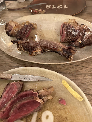 El nivell de cuina en general (excepte la brasa) és correcte. Els entrants i primers plats estan bé (raviolis de foie, parmentier de patata, capipota, esqueixada de bacallà, favetes...) però cap és excepcional ni sorprenent ni massa elaborat. El txuletón madurat 60 dies és boníssim i el couen a la brasa perfecte. Vaig gaudir-lo molt. El pastís de formatge dels millors que he provat (si no el millor, i no en sóc fan). El preu està molt inflat, clarament dirigit a un públic molt concret que freqüenta la zona. Evidentment, no esperava que un txuletón d'1 kg sigui barat, però el preu de tot està disparat, i la resta de plats crec que no ho valen. Una idea molt original és el celler, on el client pot entrar, remenar i directament agafar l'ampolla que voldrà beure. A més tenen molta varietat, nivell alt i rang de preus variat. Punt positiu aquest. La carta no està disponible en català, només en castellà i anglès, i tampoc el parlen varis dels treballadors (a la Cerdanya, suposadament en un restaurant de muntanya... Em sembla poc elegant de cara al territori, i de nou, està clar l'objectiu de públic). L'espai és agradable. Algunes taules potser massa petites i apretades per a un grup.