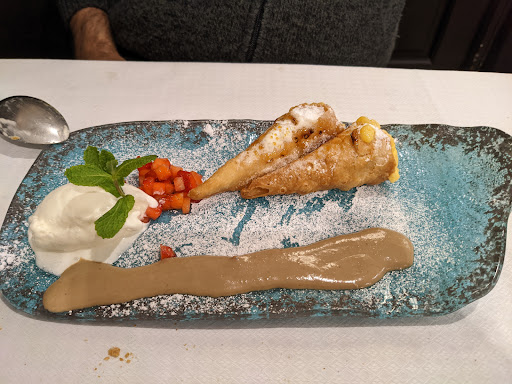 Read moreHemos comido unas cigalas, que aunque eran más bien pequeñas, estaban exquisitas y en su punto.. La ración ha sido merluza en salsa verde con almejas, que estaba impresionante de buena y chipirones al horno en su tinta con verduritas, que mi acompañante ha encontrado buenísimos. De postre pedimos canutillos, un pelín espesa la crema pero ricos y con una presentación gustosa y la tarta de naranja con sorbete de naranja que nos ha sorprendido. Era más tipo babaroise, sin apenas bizcocho, sólo una finísima capa, con mucho sabor a naranja y un caramelizado en la superficie, ligera de comer y deliciosa. El trato del personal exquisito,les felicito a ell@s y al cocinero y ayudante, a quienes ya hemos transmitido nuestro agrado. El precio muy ajustado, por debajo de lo que esperábamos, así que lo recomendamos al cien por cien y si volvemos a caer por la población, repetiremos sin...