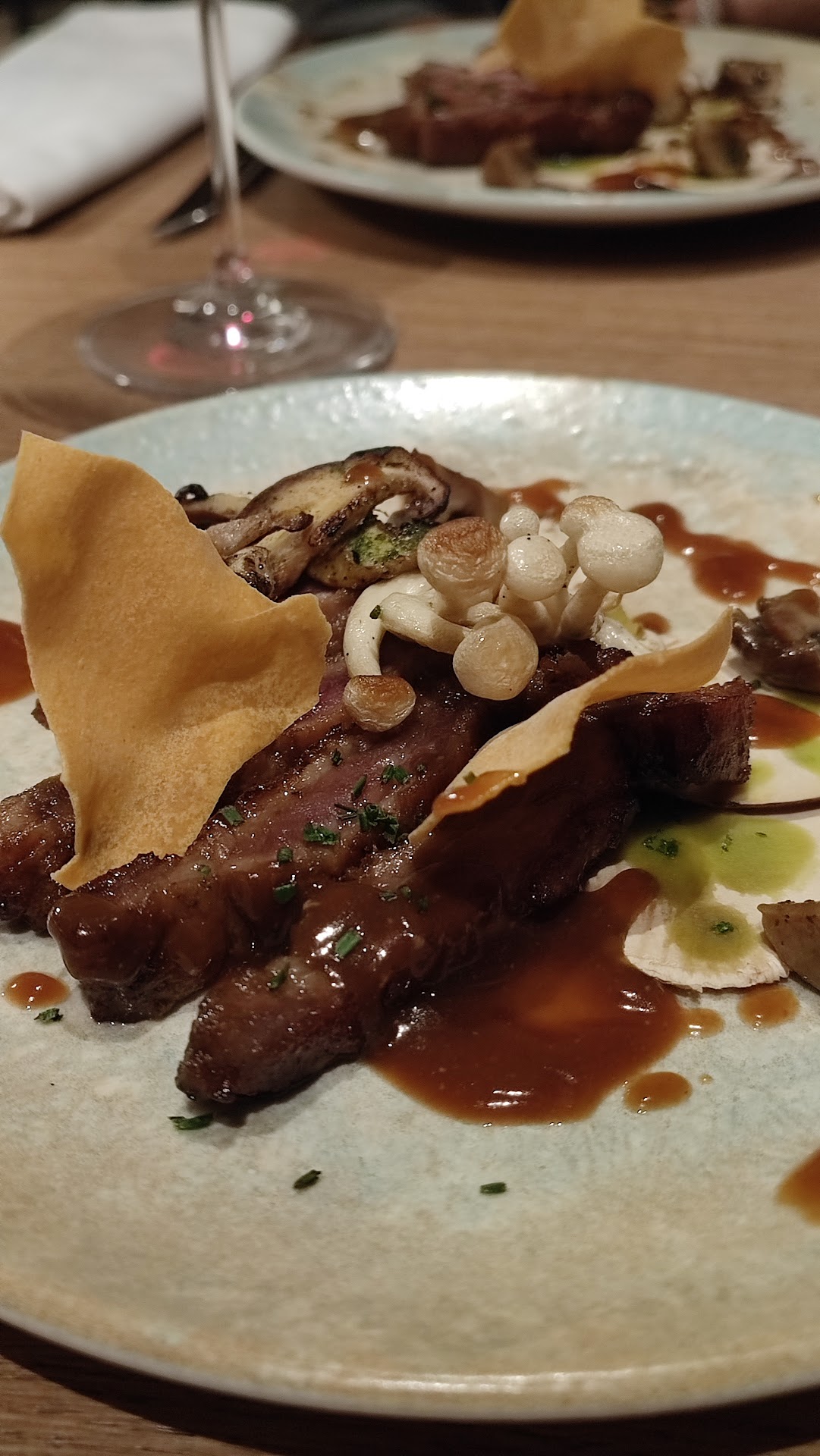 Habíamos oído hablar de Labar y no dudamos en reservar (obligatorio, hay pocas mesas y siempre primarán la atención a llenarlas todas). Labar (acantilado en euskera) es un oasis en un Deba en hibernación, contrastando el bullicio de su barra y mesas de terraza con el vacío en el resto del pueblo, lo que es una muy buena señal. La zona comedor, con una decoración impecable y funcional, invita a disfrutar de la comida con calma, bajo el excelente servicio de Ander. El aperitivo de la casa, una crema de verduras con queso de cabra, nos preparó para el resto de platos, que compartimos entre los dos, pero que se pueden compartir entre cuatro si es a modo de prueba. De entrante, productazo, anchoas de Mutriku, con unas tostadas crujientes perfectas, y una brandada de bacalao con pimientos, con textura, no tan pasada que acaba siendo un puré. Eso si, también se acompaña de tostadas, cortadas a diferente grosor que las de las anchoas, pero quizá se podría avisar para no “empanarse” demasiado. De primero, langostinos al ajillo y pimentón, de nuevo los ajos perfectamente tostados, los langostinos firmes y unos toques de mayonesa de ajo y cítrico que le venían muy bien, servidos en una cazuela muy elegante. El pan demasiado bueno, acabamos untando casi todo el aceite! Y de plato principal, un arroz de secreto, boletus e idiazabal, a medio camino entre un risotto y un caldoso, muy equilibrado y sabroso. Para cerrar, Tarte Tatin de Manzana, clásica, sin estridencias, pero perfecta. En la foto no la vais a ver, solo cómo quedó el plato, así que no dudes en pasarte por Labar a probarla! Seguro que volveremos y...