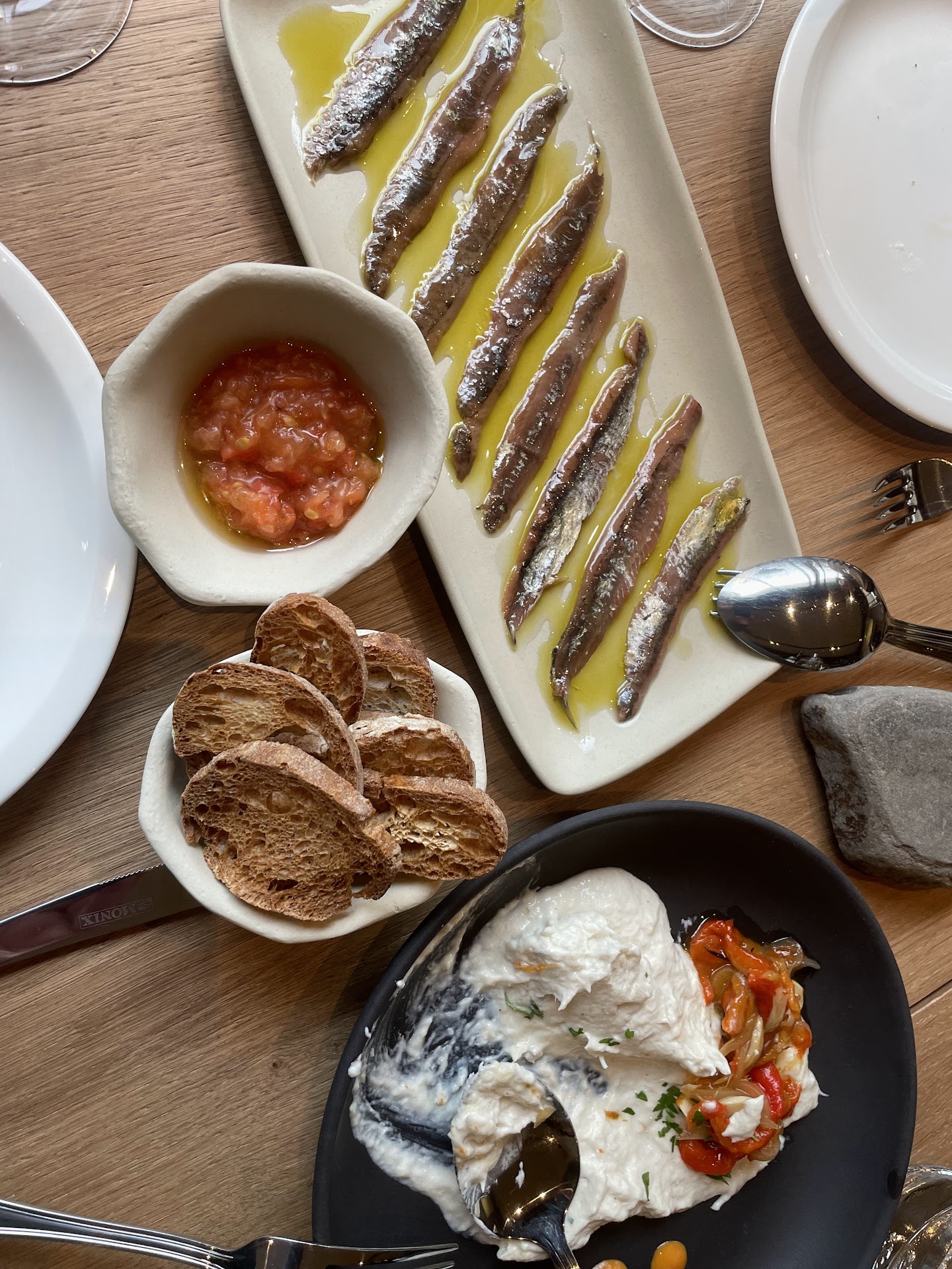 Habíamos oído hablar de Labar y no dudamos en reservar (obligatorio, hay pocas mesas y siempre primarán la atención a llenarlas todas). Labar (acantilado en euskera) es un oasis en un Deba en hibernación, contrastando el bullicio de su barra y mesas de terraza con el vacío en el resto del pueblo, lo que es una muy buena señal. La zona comedor, con una decoración impecable y funcional, invita a disfrutar de la comida con calma, bajo el excelente servicio de Ander. El aperitivo de la casa, una crema de verduras con queso de cabra, nos preparó para el resto de platos, que compartimos entre los dos, pero que se pueden compartir entre cuatro si es a modo de prueba. De entrante, productazo, anchoas de Mutriku, con unas tostadas crujientes perfectas, y una brandada de bacalao con pimientos, con textura, no tan pasada que acaba siendo un puré. Eso si, también se acompaña de tostadas, cortadas a diferente grosor que las de las anchoas, pero quizá se podría avisar para no “empanarse” demasiado. De primero, langostinos al ajillo y pimentón, de nuevo los ajos perfectamente tostados, los langostinos firmes y unos toques de mayonesa de ajo y cítrico que le venían muy bien, servidos en una cazuela muy elegante. El pan demasiado bueno, acabamos untando casi todo el aceite! Y de plato principal, un arroz de secreto, boletus e idiazabal, a medio camino entre un risotto y un caldoso, muy equilibrado y sabroso. Para cerrar, Tarte Tatin de Manzana, clásica, sin estridencias, pero perfecta. En la foto no la vais a ver, solo cómo quedó el plato, así que no dudes en pasarte por Labar a probarla! Seguro que volveremos y...