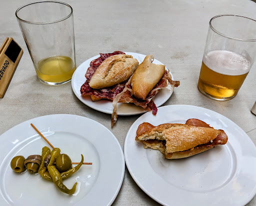 While walking the Camino Culinario* we stumbled across this taberna and found it to be absolutely fantastic. We started with one bocadillo each, plus a couple of their beers on tap. (They have excellent craft beer on tap!) The bocadillos were so freakin' good that we ordered four more because it was simply too hard to choose. They were all excellent! They also make a mean Gilda!