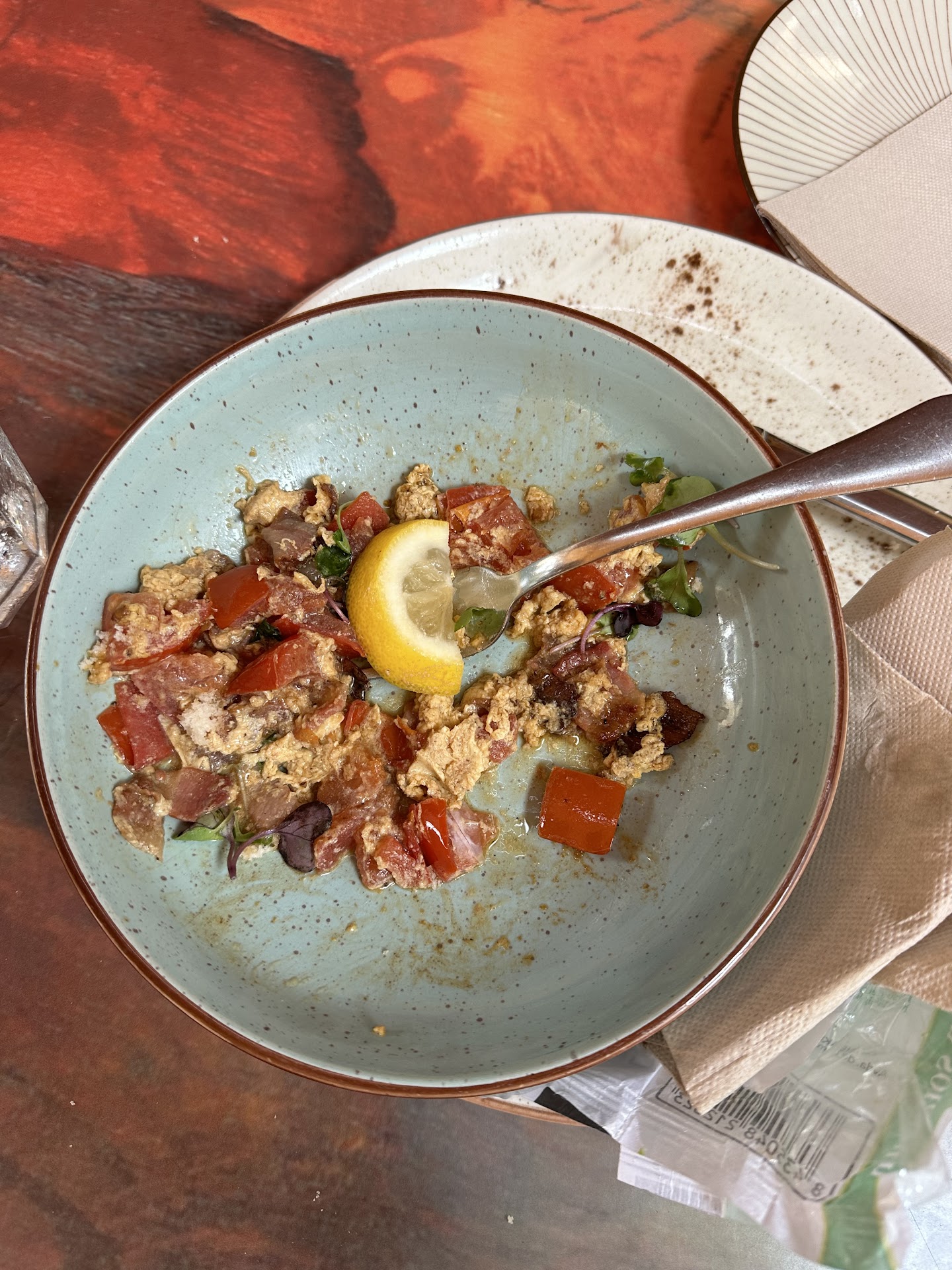 Read moreThis food was absolutely disgusting and the service abominable. I am Celiac so I cannot have gluten. I ordered the scrambled eggs with tomatoes and bacon. Turns out they put bread on top of it, but that was not advertised on the menu. No allergens were either. I assumed that it would be gluten free because it is just eggs. When we told the waiter she was rude and started saying that everywhere I go I need to tell people I have an allergen. I usually do but I did not see an allergen menu available. Turns out they have gluten free bread. I thought it was included but when we got the bill the bread was not included and cost €2,60. She continued to be rude to us. When I received my food the eggs were runny and looked like water mixed with tomato and chewy bacon. It had no flavor. The bread they heated up for me was cold/still frozen on the inside. This experience was a 0/10. But I will remember it forever with my friends so thanks for...
