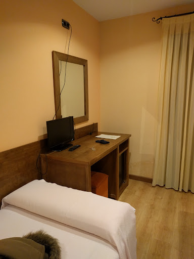 Read moreSet in a small Spanish town, you are made very welcome at this Hotel/Bar/Restaurant . Our rooms were spotlessly clean with air-con wifi and Balcony.||Dinner at 10 euro a bargain, we let our waitress/cook choose for us, our starter was battered aubergine slices, followed by lamb chops then home made cheese cake and coffee.||Breakfast is just coffee and toast. You need a smattering of Spanish as no English spoken or you...