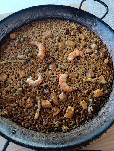 Pero una decepcionante fideuá de marisco en la cual no había gamba, solo cigala (aunque muy buena) y unas pocas almejas y mejillones (de los cuales 2 estaban mal) y aceitosa de más que provocó que nos repitiera durante toda la noche.