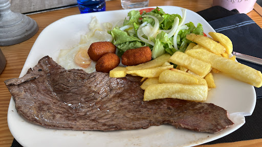 Read morePocas veces puedes encontrar un sitio como este. Cantidades enormes, precios bajos y una calidad excepcional. De los mejores restaurantes que he probado en mi vida. La calidad-precio no tiene par. Es de los típicos restaurantes que, una vez que has comido, te molesta haberle puesto 5 estrellas a otros restaurantes. Entrante (degustación de croquetas): 12 croquetas con de 4 sabores diferentes y una calidad espectacular. Una salsa rosa en el medio que no te la puedes perder. Cachopo de ternera: Te lo acabas de lo rico que está. Acabas sudando de la cantidad (para 2 personas) pero te lo acabas porque no es una calidad que esté pensada para tirarse. Entrecot (poco hecho en mi caso): Se deshace en la boca. Perfectamente hecho, calidad del norte y cantidad suficiente para salir rodando. Postres caseros (tiramisú, tarta de zanahoria y tarta de queso): Es muy fácil encontrar peores tiramisús en cualquier parte. Cantidad abismal y estaba espectacular. La tarta de zanahoria, además de venir con una preciosa decoración, tiene un sabor y una textura excepcional. Y la tarta de queso... Dios la tarta de queso. Esponjosa, medidas perfectas de la receta y muy, pero muy cremosa.