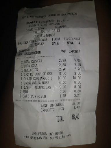 Read moreThis is on the motorway from Granada to Lorca, and it would be soo nice if we had places like this on British motorways!||||We were journeying home from Cordoba to Mazarrón and stopped here for lunch. It was a very good choice. They have a very nice dining room and a 12€ Menu del Dia. A choice of two soups; between us we tried both and they were very nice. Then we all chose the same main of pork chops, expecting an average sized, not very thick chop. Actually, we each had two decent size, reasonable thickness pieces of meat that were more fillets than chops, and were really nice. Topped off with dessert and we were ready to roll once again.||||We will certainly stop here for lunch again if we are...
