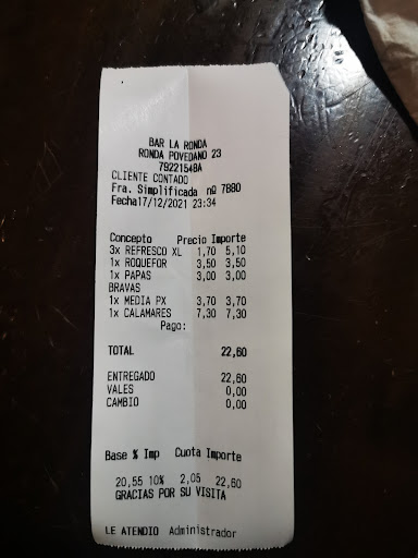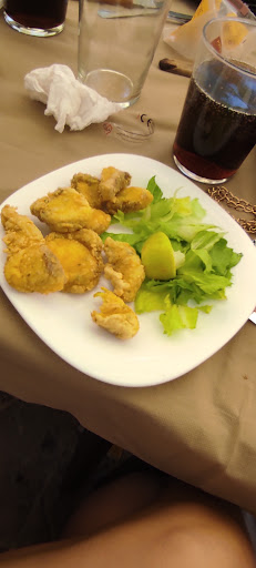 Y ya cuando mi mujer casi no tenía hambre llegaron los calamares y regulares ya que estaban un poco insipidos(pedimos tapa, preguntó si eso es una tapa a lo que me dicen que si y me sorprendo mucho, al final en la cuenta cobran ración, se lo digo al camarero y se ríe como si fuera una broma.