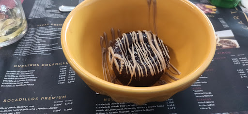 Fuimos a comer. Hicimos reserva para cuatro, pero siendo un miércoles no hubiera hecho falta. Dispone de una terraza grande en la plaza roja y mesas en el interior, nosotros comimos dentro. Pedimos para compartir, un ración de lacón, muy buena y trozos, cortados a cuchillo, grandes con aceite y pimentón, en segundo lugar bacalao a la dorada, también muy bueno, y una ración generosa, y finalmente, solomillo trinchado, estaba bueno y venía acompañado de patatas fritas, quizás le hubiera hecho falta una salsa. De postre pedimos coulant, que no estaba, por lo menos el mío, fundido por dentro. Los precios son algo elevados, pero todo estaba bueno....