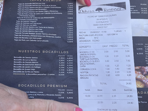 Read moreUn chiste la experiencia!! Vergonzoso!!! El día 25 de junio (hoy finalmente escribo la reseña) pedimos la promoción de 4 bocadillos y dos cervezas que aparece en la carta y dicen que ya no la ofrecen… ¿perdona? Lo estás ofreciendo en tu carta… pedimos una ración de patatas bravas, casi 5 euros la ración os adjunto foto… con el tamaño te estaban robando en tu cara… 10-12 gajos de patatas…. Unos 40-50 céntimos por gajo!! UM ROBO… y el colofón final me ponen una bebida caducada… se lo digo y no sólo no me la cambian que también me la cobran (lo podéis ver también en el ticket) Ya no volvemos más!!! Que roben y...