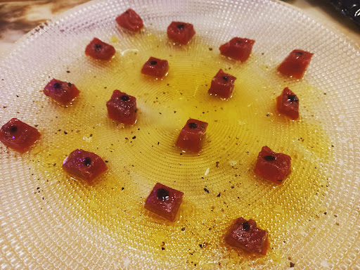 El plato de Sashimi de atún es, aunque minimalista, una explosión de calidad del pescado y del AOVE.