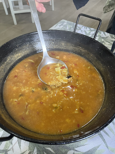 Read moreYa no tiene nada que ver con lo que era …. Llegamos al restaurante y decidimos que queríamos menú y en ese mismo momento nos comunican que no podía ser , que para el menú debíamos haberlo comunicado antes…..¿ cuál es la diferencia si íbamos a pedir el mismo arroz? Por otra parte pedimos unos calamares al centro mientras esperábamos el arroz , para nuestra sorpresa los calamares estaban muy sosos, duros y con aceite a rebosar, reclamamos un poco de sal , por lo que obviamente tuvimos que probarlos, le comunicamos a la camarera que no hay quien los coma y se los lleva. Al pedir la cuenta vemos que nos han cobrado en vez de una ración entera de calamares , media ….. habiendo probado un calamar por persona… un detalle que deja bastante que desear El arroz con bogavante tampoco tiene ya nada que ver, demasiada agua y muy poco...