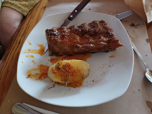 Las raciones son enormes, hasta las ensaladas y bien cargadas de salmón. Está todo delicioso, y los entremeses con la ensaladilla rusa es una delicia. ¿La carne? El entrecot se te deshace en la boca estando en su punto, el churrasco tiene un sabor impresionante y la carrillera con naranja y dátiles como salsa... Comes y cenas con esos dos platos, tremendo todo.